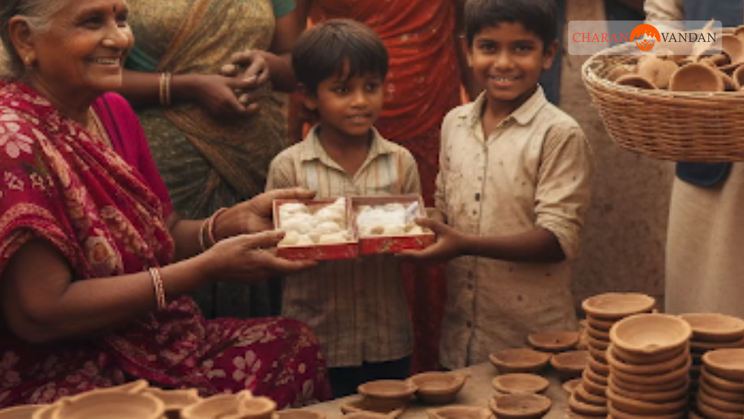 This Diwali, Charanvandan Foundation is bringing hope to both communities. Through our initiative, we directly purchase diyas from struggling Kumhar families, giving them the livelihood they desperately need. These very diyas, along with sweets and festive food kits, are then distributed to underprivileged families living in the shadows of poverty.